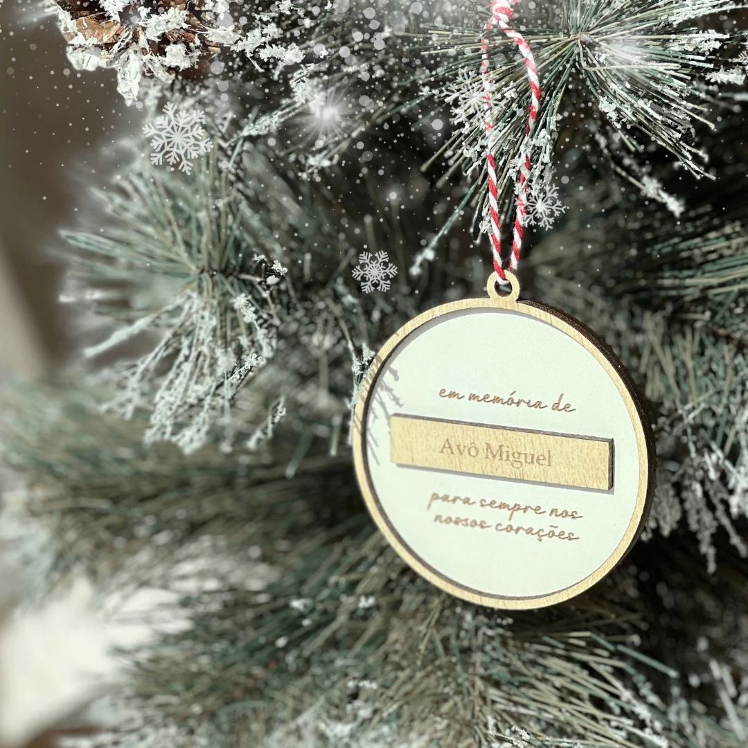 Composto por duas camadas (bétula e MDF branco) e gravado a laser com a frase “Para sempre nos nossos corações”, é uma recordação cheia de amor que traz conforto e presença à árvore de Natal.