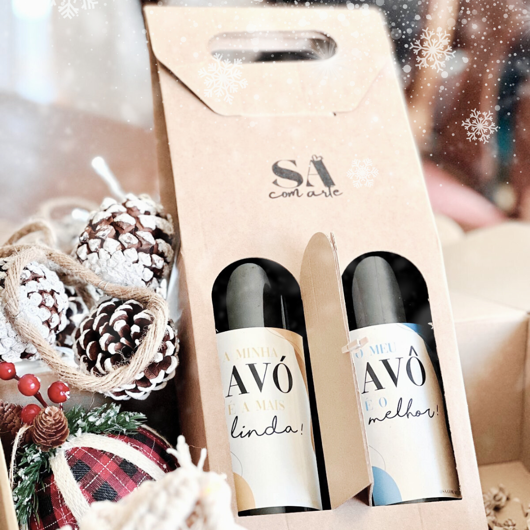 📦 Inclui: 2 garrafas de vinho + caixa + rótulos personalizados